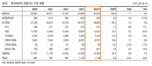 이밖에도 현대해상은 비용 효율화를 위해 전반적인 보험 관리체계를 강화하고, 투자 수익을 늘리기 위해서 올해 증시 전망이 좋지 않은 만큼 주식·채권 비중은 줄이고 대체투자 비중은 확대하는 등 자산군별 포트폴리오를 조정할 방침이다.