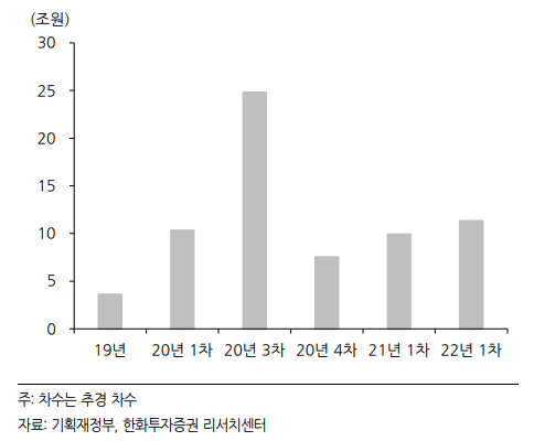 한화투자증권 김성수 연구원은 “제원 조달에서 가장 큰 비중을 차지하는 방안이 재량지출과 초과세수 활용”이라면서도 “현실적으로 쉽지 않다”고 평가했다. 재량지출 항목 중 상당수는 이미 고정지출로 조정이 쉽지 않은데다, 초과 세수 역시 경기회복을 전제로 하는데 이미 경기 고점을 통과하는 상황에서 추가적인 경기 개선 가능성은 낮다고 봐서다.